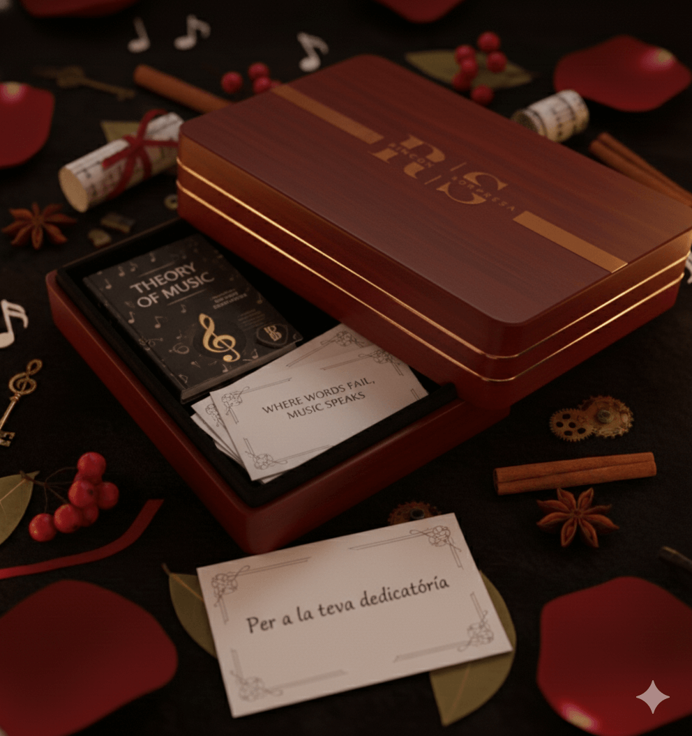 Detalls per a intèrprets i oients: Perquè la música se sent i s’executa, la caixa inclou: